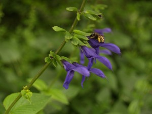 In the rental fence bed, the Salvia guaranitica is starting to bloom.