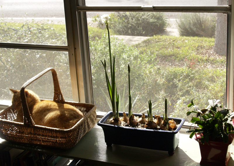 When I opened the window to bring in Saturday’s breeze of outdoor fragrance, I found another early present, symbolic of progression and a new year on the way.