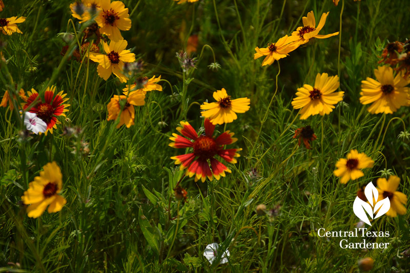 At Mueller, I spied spikes of lavender Texas vervain (Verbena halei) among Indian blanket and Thelesperma.