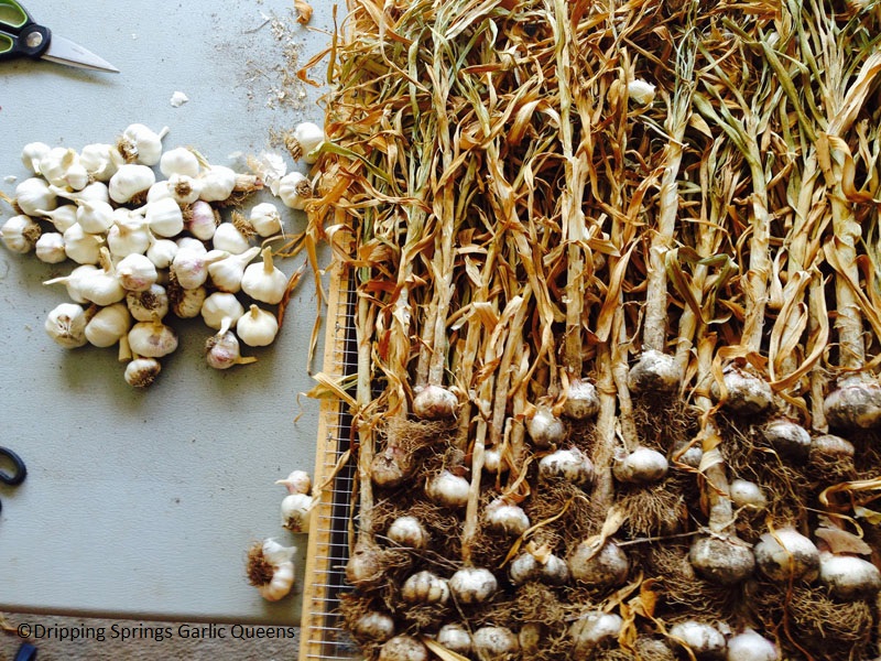 Food for us: Ivy Lara from Dripping Springs Garlic Queens joins Trisha Shirey to show how to harvest and dry your homegrown garlic. DSGQ Jana Kaura in the middle for post-taping picture.