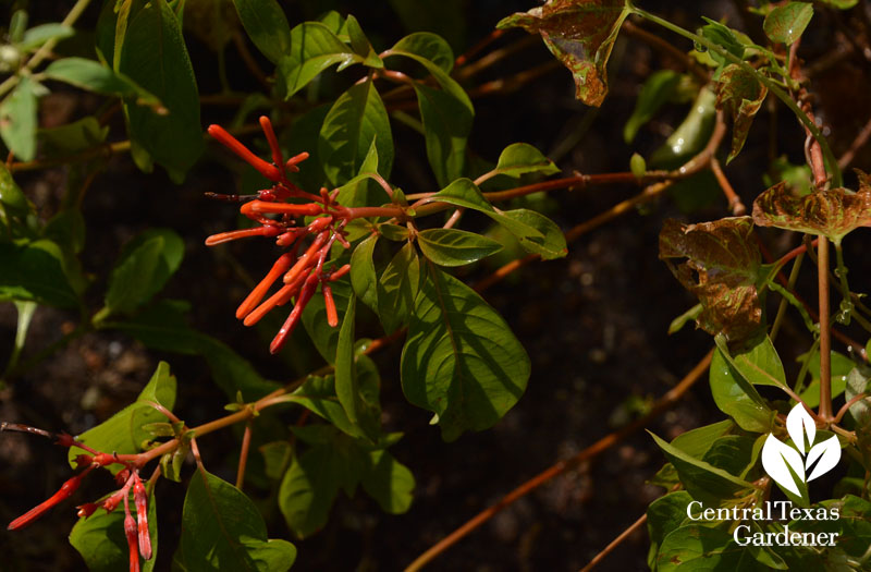 In one of the hottest spots in my garden, Hamelia patens will handle drought and grueling heat just fine in a couple of years. Right now, it’s barely three months in the ground as a 1-gallon transplant, so needs a good soaking every week.