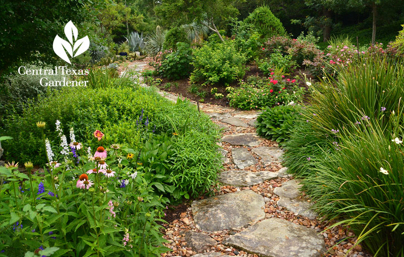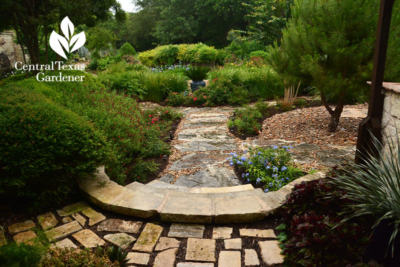 After reshaping her flooding land with dry creek beds and pathways, she personalized each destination in her water-thrifty, wildlife habitat.