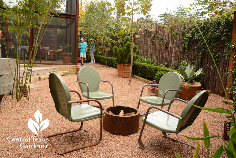 In the narrow space, heightened by a Mission olive tree (that made it through recent low temps just fine), he crafted a sliding steel and rebar gate that started with hardware from a defunct butcher shop in Seguin.