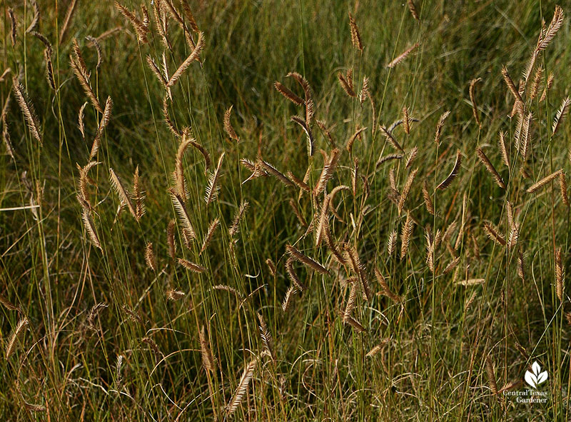 But Lindheimer muhly looks almost sedate against bushy bluestem’s explosive puffballs.
