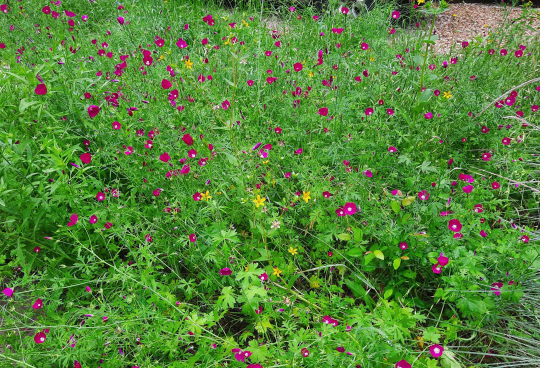 When Ilse and her husband Tim Braun purchased their first home in 2021, “We learned very quickly that we do not like mowing at all,” she told us. “So, we started killing our lawn in August of 2022. And we had black plastic down for quite a long time. And finally, in May of 2023, we lifted up the black plastic and seeded it. It’s pretty good soil, as far as I can tell. But we did amend it with some compost, but overall, on the clay side.”